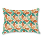 A retro geometric pattern featuring stylized flowers with alternating teal and terracotta-orange petals. The seamless design is set on a cream, textured background, creating the look of vintage ceramic tiles with a mid-century modern aesthetic.
