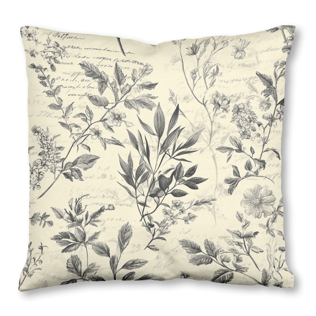 Vintage Botanical Script Toile 6 - Throw Pillow 16x16