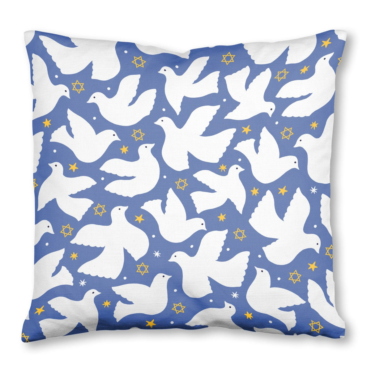 A seamless pattern of stylized white doves flying against a blue background. The design is scattered with yellow Stars of David and smaller stars, creating a symbolic and peaceful motif with Jewish themes.