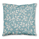 This is an elegant, seamless botanical pattern featuring intricate white line drawings of swirling vines, leaves, and small flowers. The delicate, classic design is set against a solid, muted teal-blue background, creating a sophisticated and vintage look.
