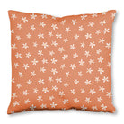 A seamless floral pattern featuring small, simple white flowers with yellow centers. The stylized blossoms are scattered across a warm, terracotta-colored background, creating a charming and minimalist design with a hand-drawn feel.