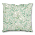 A serene, seamless botanical pattern of delicate white flowers and gracefully swirling green leaves. The elegant, illustrative design is set against a soft sage green background, creating a timeless and tranquil aesthetic with an Art Nouveau influence.