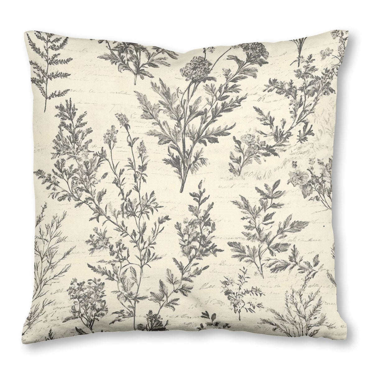 Vintage Botanical Script Toile 7 - Throw Pillow 20x20