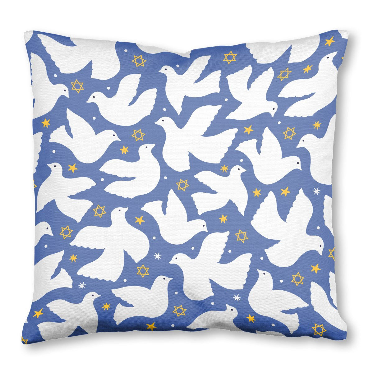 A seamless pattern of stylized white doves flying against a blue background. The design is scattered with yellow Stars of David and smaller stars, creating a symbolic and peaceful motif with Jewish themes.