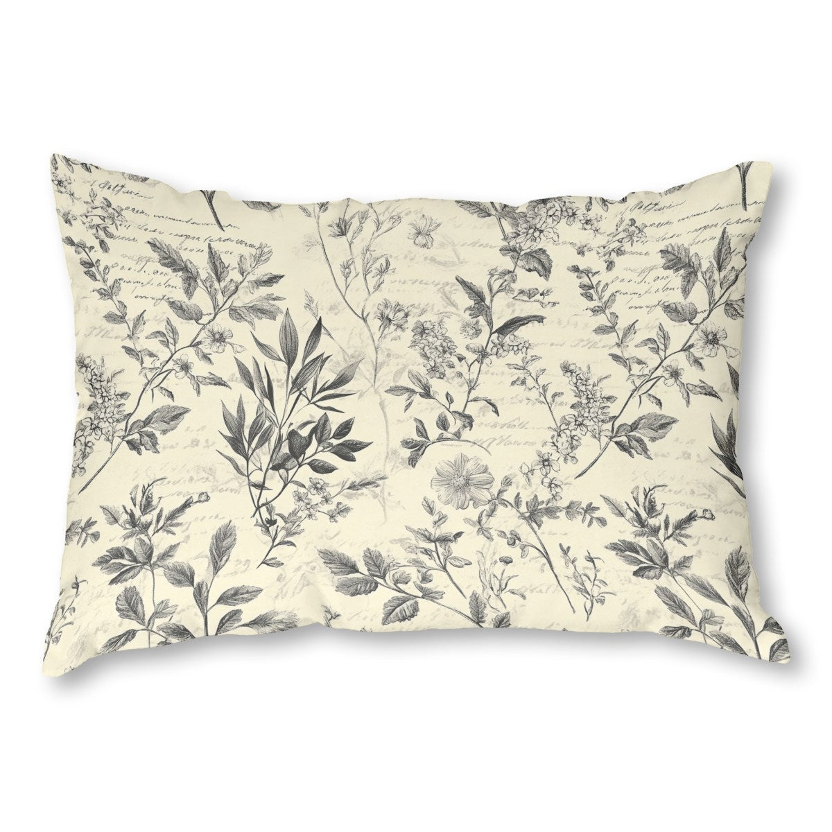 Vintage Botanical Script Toile 6 - Throw Pillow 14x20