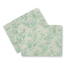 A serene, seamless botanical pattern of delicate white flowers and gracefully swirling green leaves. The elegant, illustrative design is set against a soft sage green background, creating a timeless and tranquil aesthetic with an Art Nouveau influence.