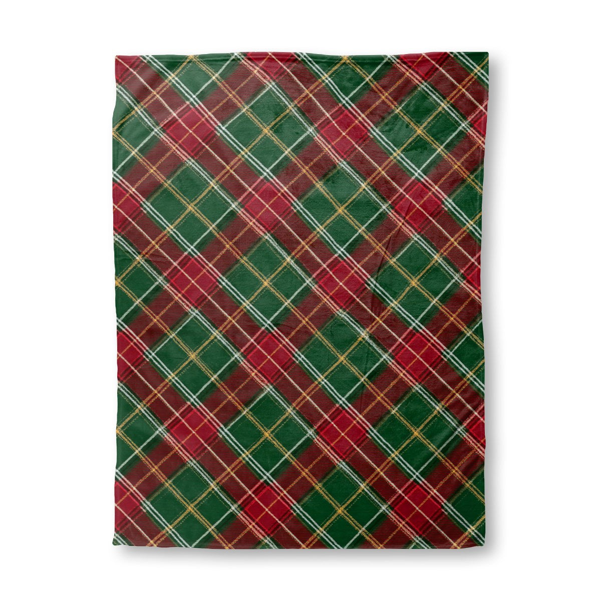 This image features a classic Christmas plaid pattern. The diagonal tartan design consists of intersecting stripes in festive colors of red, green, white, and gold. The pattern has a slightly woven texture, evoking a traditional and cozy holiday feel.