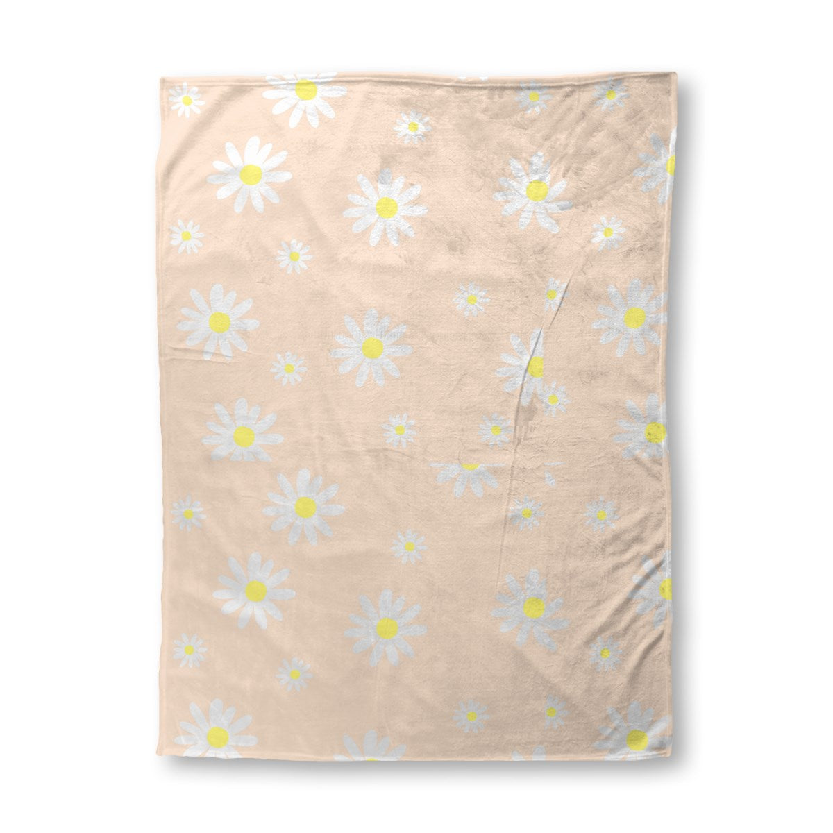 This is a simple, seamless pattern of stylized daisies. White flowers with yellow centers, in various sizes, are scattered across a soft, pale peach background for a sweet and gentle effect.