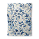 This is an elegant, seamless floral pattern in a classic blue and white palette. Intricately drawn flowers and leaves intertwine over a light, textured background, creating a timeless design reminiscent of vintage botanical illustrations or fine porcelain.