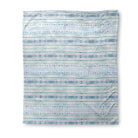 The image is a watercolor painting featuring a repeating pattern. The main design consists of broad horizontal stripes in varying shades of blue and teal, interspersed with thinner stripes of white. A central band displays a more intricate pattern of smaller, stylized shapes, including dashes, dots and small oblong forms, also in varying shades of blue. The overall effect is a harmonious blend of simple stripes and a more textured, almost tribal-inspired pattern. The color palette is cool and calming, emphasizing shades of blue and teal against a white background. The pattern is symmetrical, reflecting across both the horizontal and vertical axes.