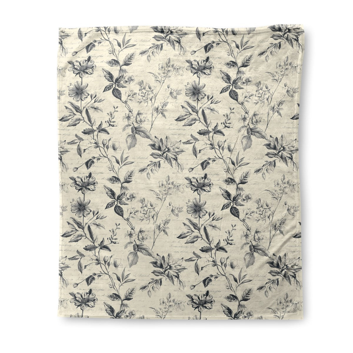 Vintage Botanical Script Toile 13 - Super Plush Blanket 50x60
