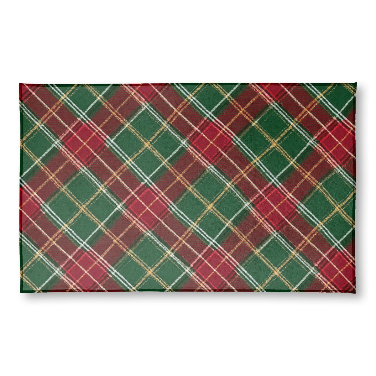 This image features a classic Christmas plaid pattern. The diagonal tartan design consists of intersecting stripes in festive colors of red, green, white, and gold. The pattern has a slightly woven texture, evoking a traditional and cozy holiday feel.