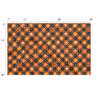 A whimsical, seamless Halloween pattern featuring a diagonal plaid in orange, black, and brown. The design is scattered with hand-drawn, cartoonish skulls, jack-o'-lanterns, and other small autumnal motifs, creating a festive and spooky-cute feel.