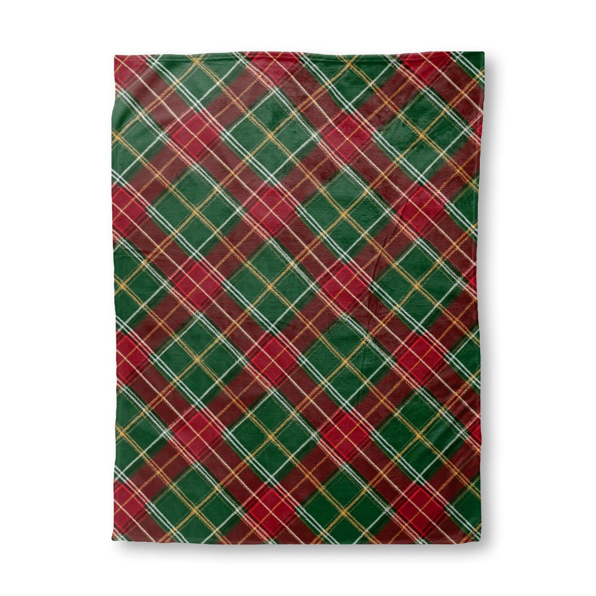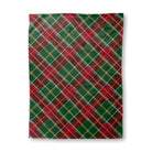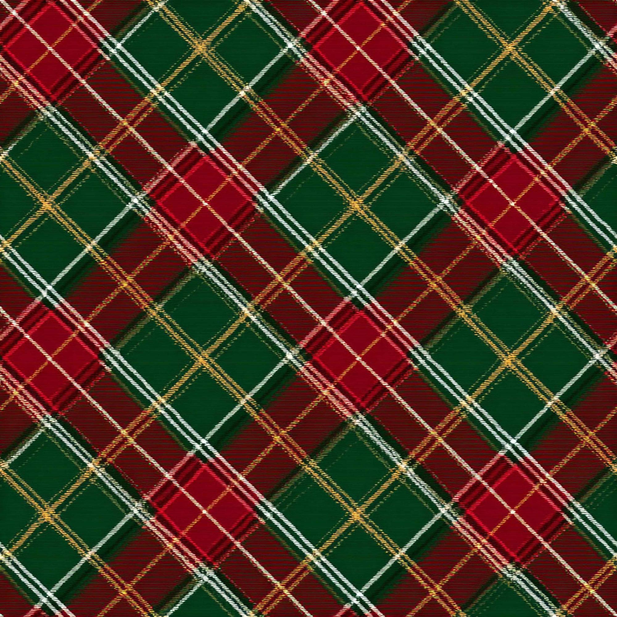 This image features a classic Christmas plaid pattern. The diagonal tartan design consists of intersecting stripes in festive colors of red, green, white, and gold. The pattern has a slightly woven texture, evoking a traditional and cozy holiday feel.