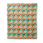 A retro geometric pattern featuring stylized flowers with alternating teal and terracotta-orange petals. The seamless design is set on a cream, textured background, creating the look of vintage ceramic tiles with a mid-century modern aesthetic.