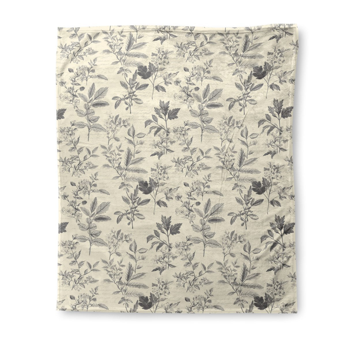 Vintage Botanical Script Toile 13 - Sherpa Blanket 50x60