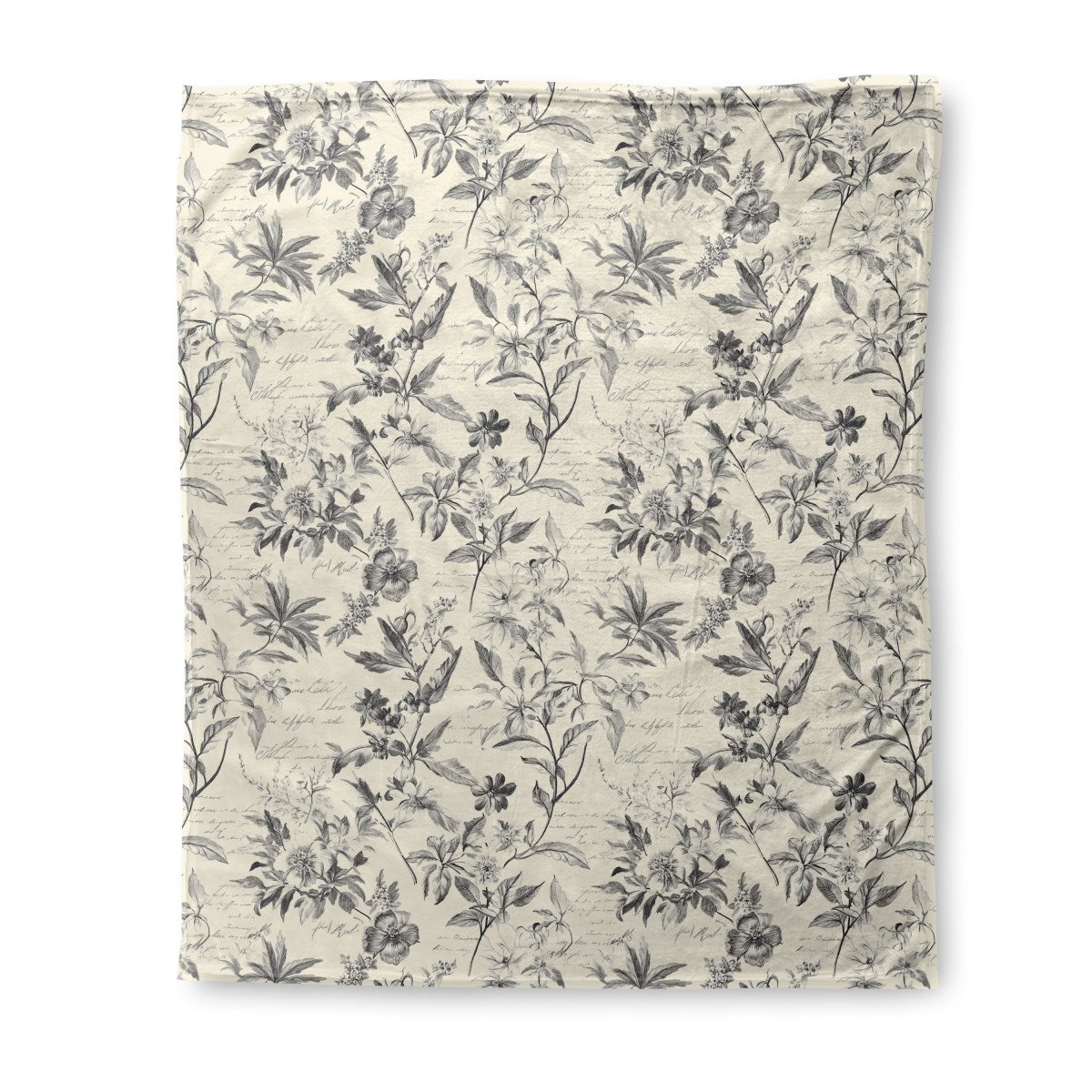 Vintage Botanical Script Toile 13 - Sherpa Blanket 50x60