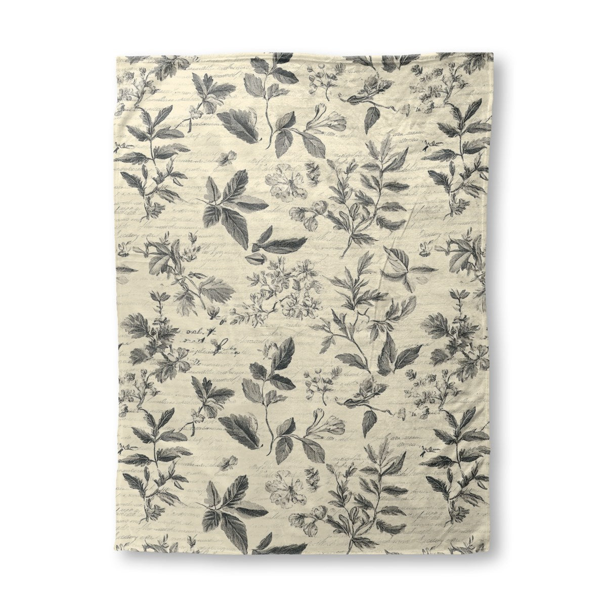 Vintage Botanical Script Toile 1 - Sherpa Blanket 30x40