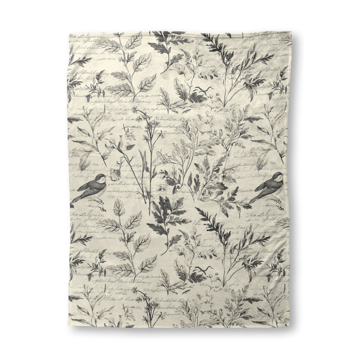 Vintage Botanical Script Toile 4 - Sherpa Blanket 30x40