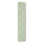 A vintage-style seamless pattern featuring delicate white flowers on gracefully swirling green vines. The intricate, elegant design is set against a soft, muted sage green background with subtle decorative swirls, creating a classic and serene composition.