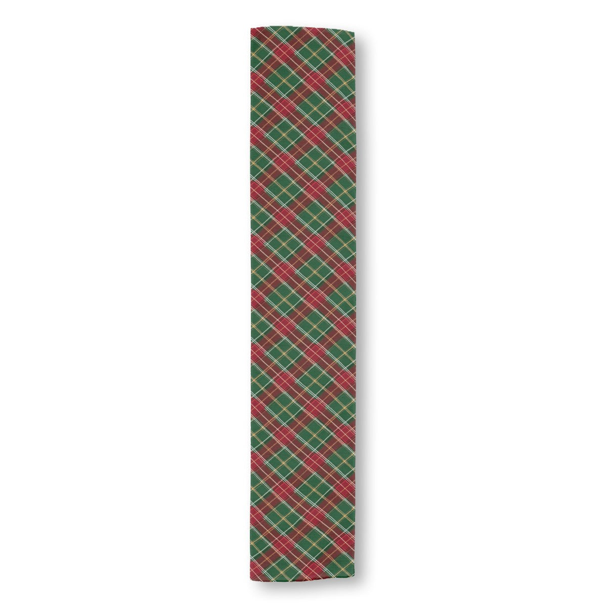 This image features a classic Christmas plaid pattern. The diagonal tartan design consists of intersecting stripes in festive colors of red, green, white, and gold. The pattern has a slightly woven texture, evoking a traditional and cozy holiday feel.