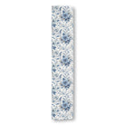 This image displays a seamless floral pattern with elegant, watercolor-style illustrations. Various blue flowers, from light to deep indigo, are intertwined with matching leaves and stems on a clean white background, creating a classic and delicate botanical design.