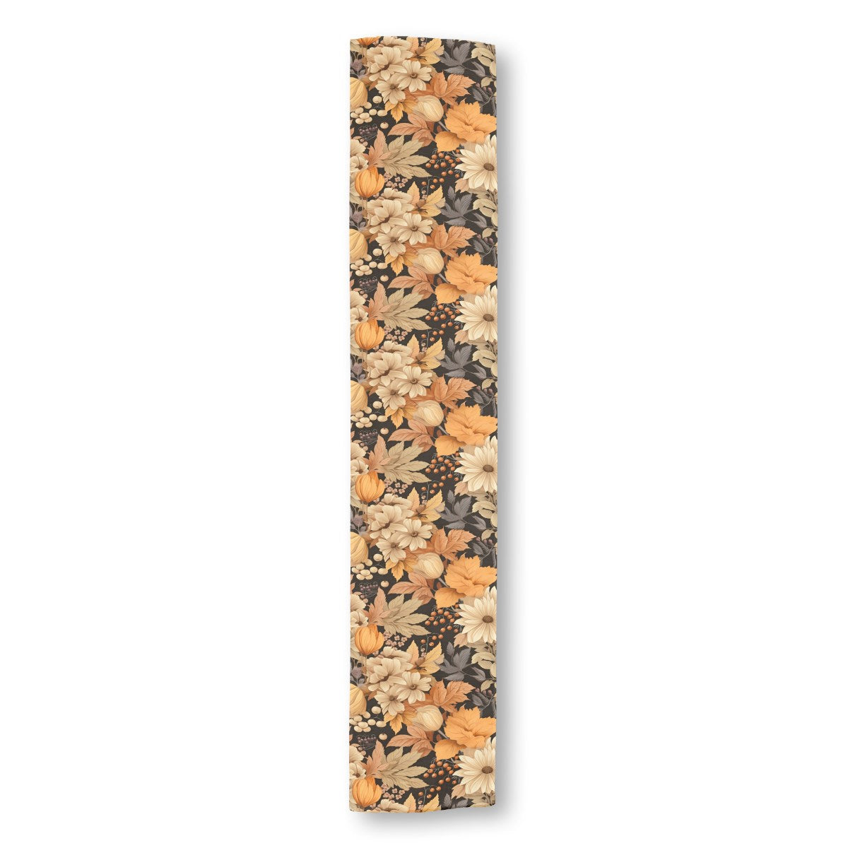 This is a seamless botanical pattern featuring autumn flora. A warm palette of orange, cream, and muted tones for flowers, leaves, and berries is set against a dark background, creating a rich, elegant, and vintage-inspired design with a cozy, autumnal feel.