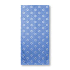 A seamless pattern features white Stars of David, a well-known symbol of Judaism, arranged in an orderly grid against a solid blue background.