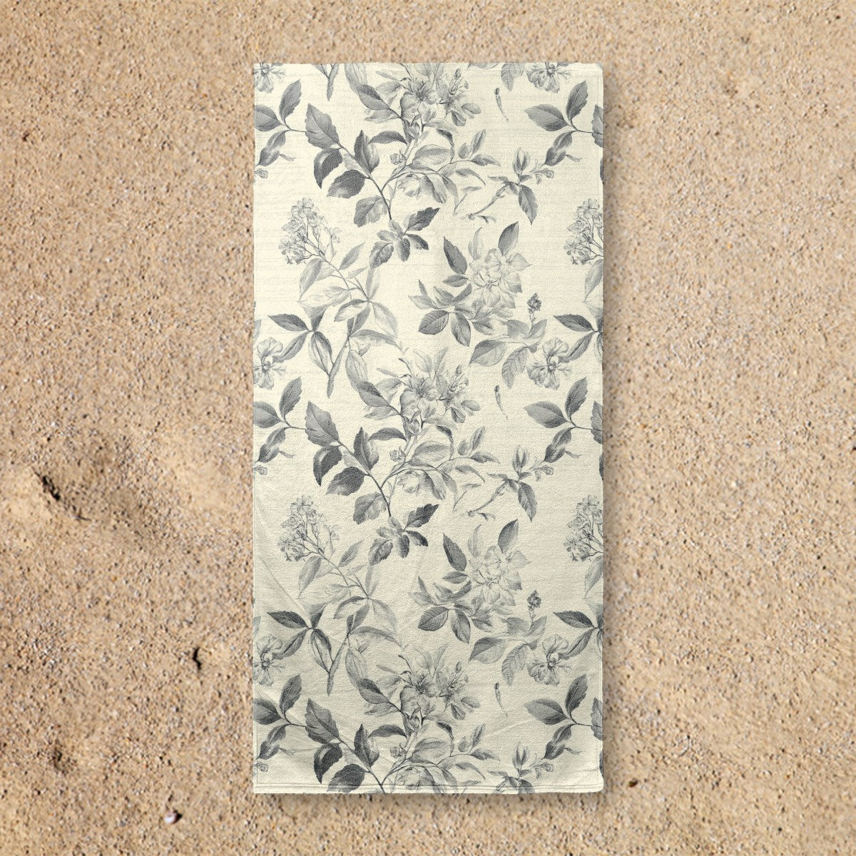 Vintage Botanical Script Toile 3 - Beach Towel 30x60