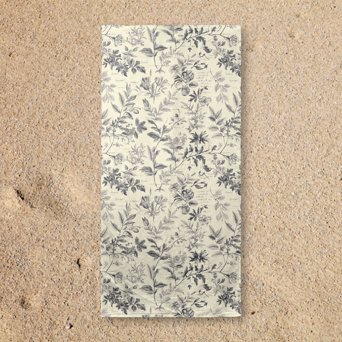 Vintage Botanical Script Toile 9 - Beach Towel 30x60