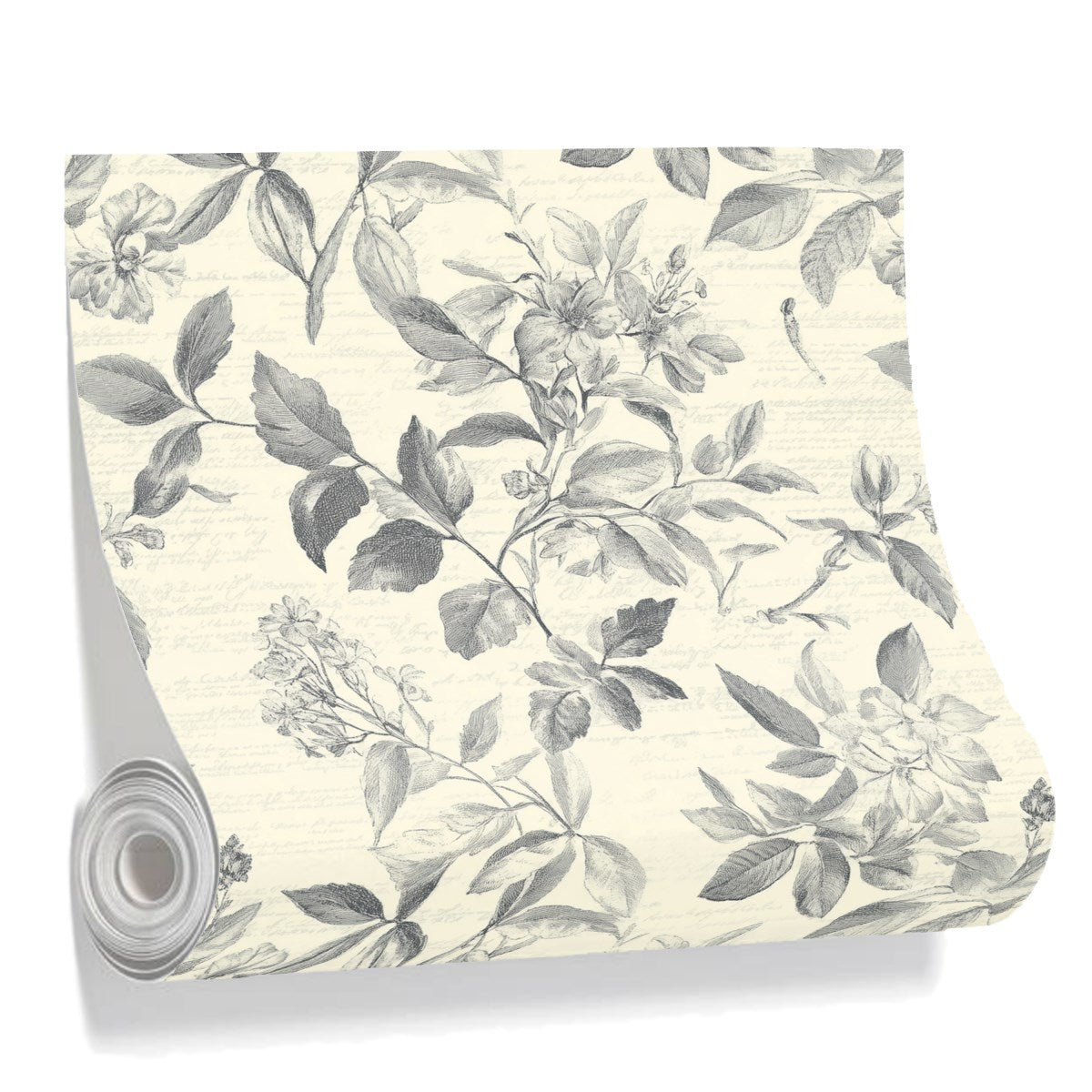 Vintage Botanical Script Toile 9 - Wall Covering - Peel and Stick Wallmark Canvas