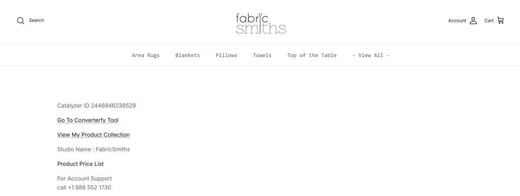 After your account has been created, selecting 'Catalyzer Account' from your 'Account' page will provide you with links to; The Converterfy Tool, Your Product Collection and your Product Price List.