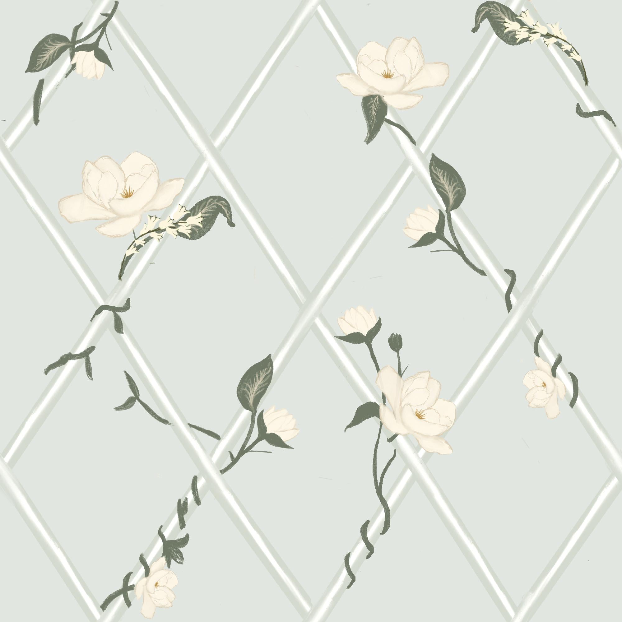 Blooming Trellis In Blue - Wall Covering - Peel and Stick Wallmark Canvas