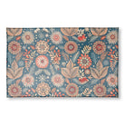 A dense, folk art-inspired pattern features stylized flowers, leaves, and ferns against a dark teal background. The illustration uses a warm, autumnal palette of rust, orange, and cream, creating a rich, vintage textile feel.