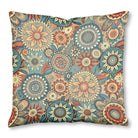 A dense, bohemian-style pattern of intricate, hand-drawn mandalas and stylized flowers. The collage-like design uses an earthy color palette of teal, orange, and cream, creating a vintage, folk-art feel.