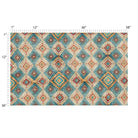 This image displays a richly textured, repeating geometric pattern with a Southwestern or tribal aesthetic. Jagged-edged diamonds in a palette of teal, red, and earthy tones create a rustic, weathered design reminiscent of a woven rug or textile.
