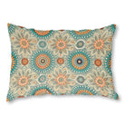 This is a vibrant, repeating pattern featuring intricate mandalas and stylized flowers in a bohemian, folk-art style. The design uses a striking color palette of teal, orange, and cream, with detailed line work and dotted textures creating a rich, layered effect.