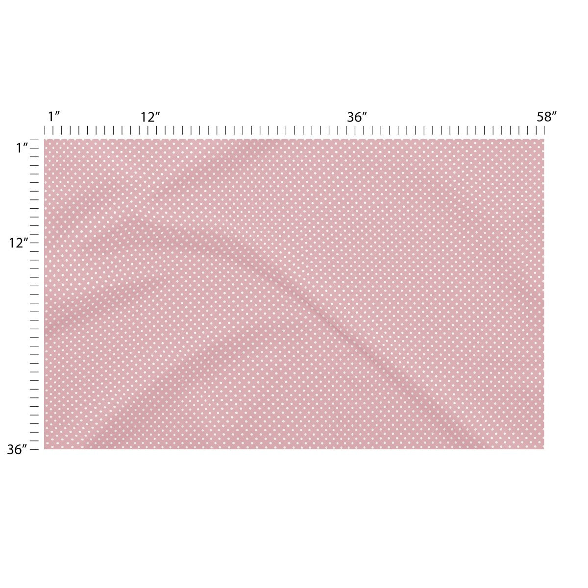 This is a classic, repeating pattern of small, evenly spaced white polka dots. The dots are arranged in a uniform grid on a solid, muted background of dusty rose or mauve, creating a simple and gentle geometric design.