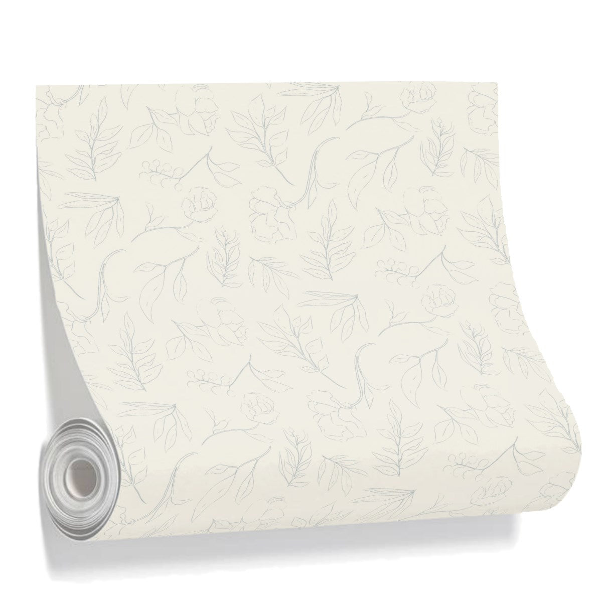 Delicate Floral-Nuetral Blue - Wall Covering - Peel and Stick Wallmark Canvas