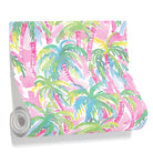 Lilly's Pink Palms - On White - Wall Covering - Pre-Pasted PVC Free