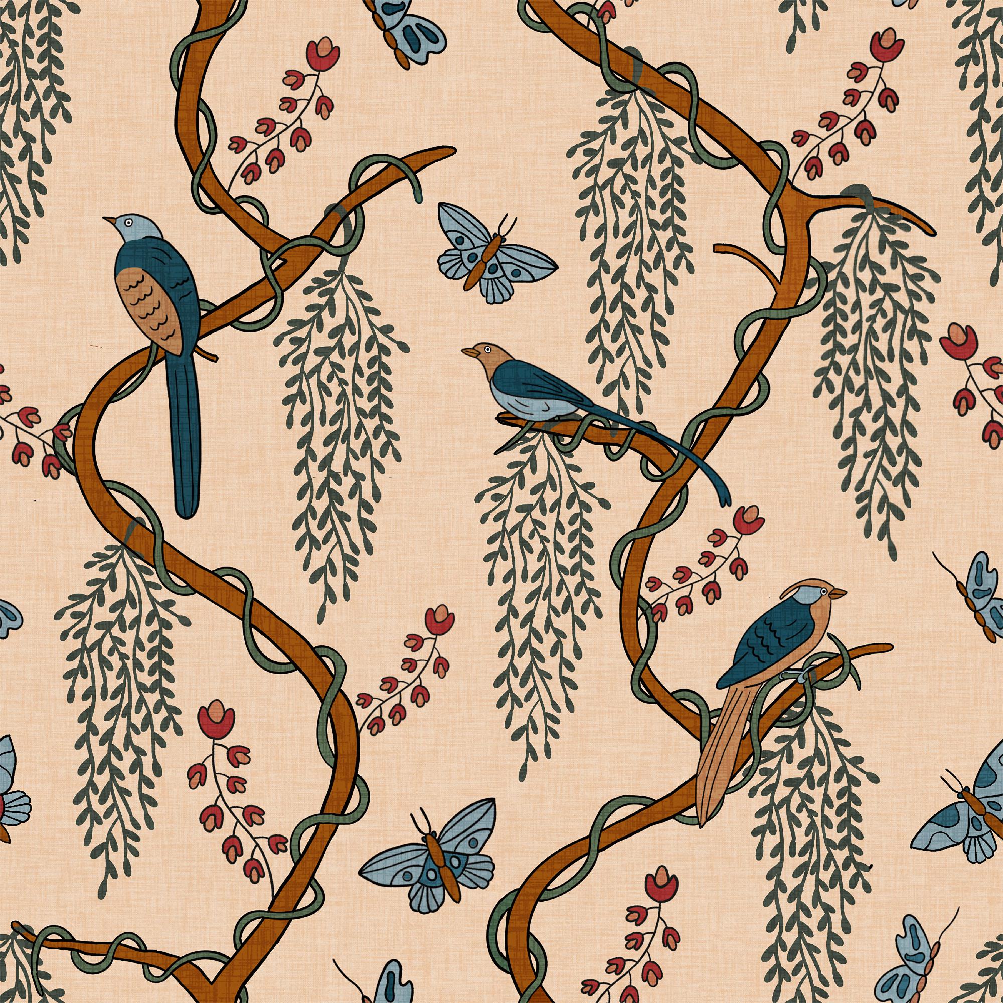 Perched Birds Chinoiserie - Throw Pillow 18x18 BZNI