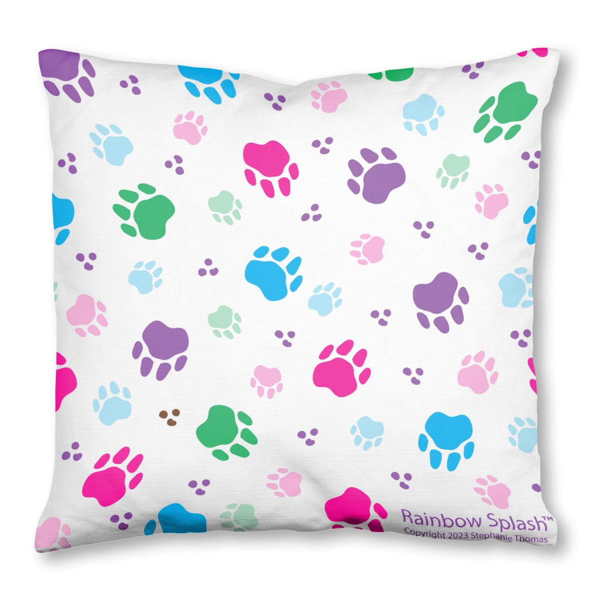 Rainbow Splash Paws - Throw Pillow 16x16 AZNI