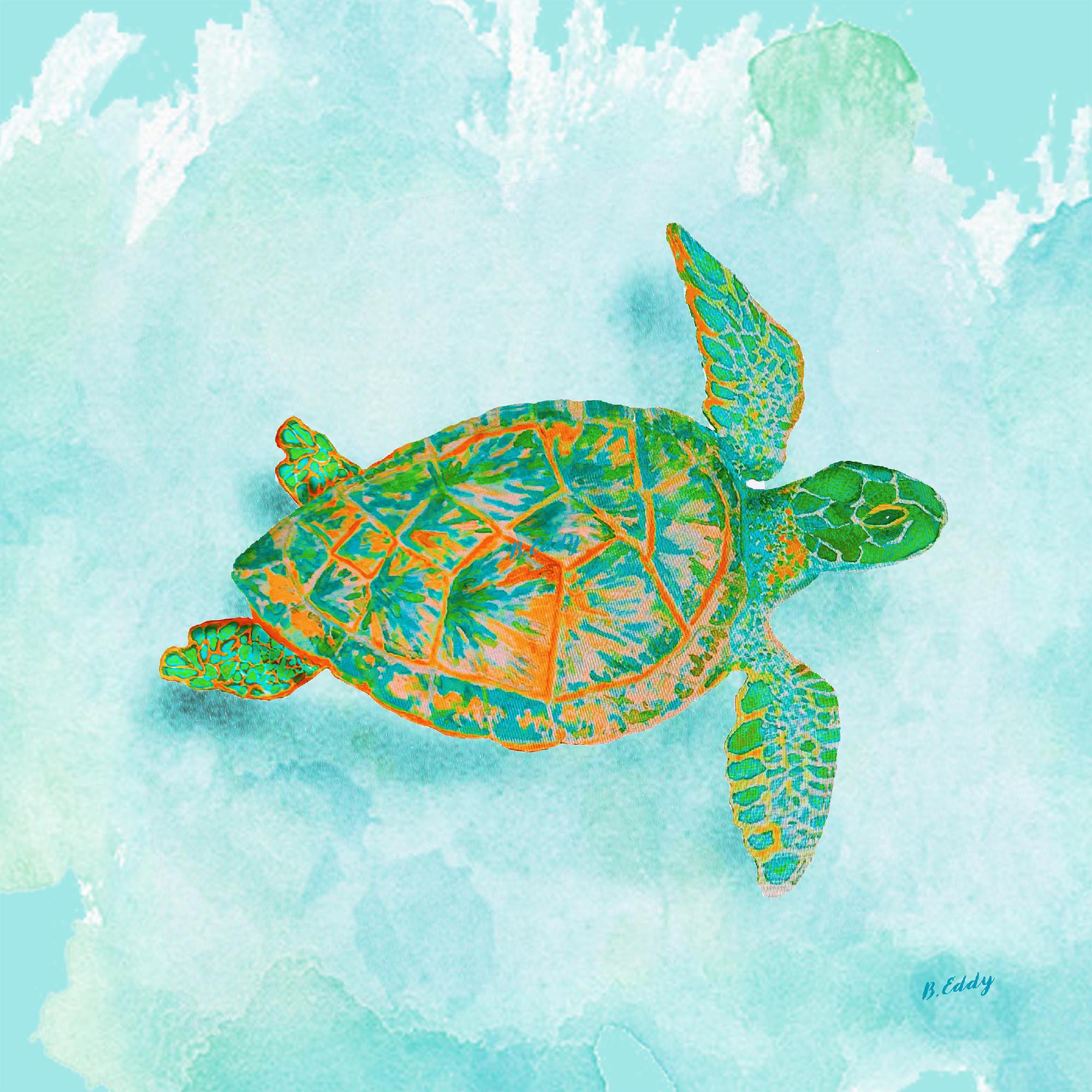 Sea Turtle Green:Orange - Throw Pillow 18x18 OBZNI