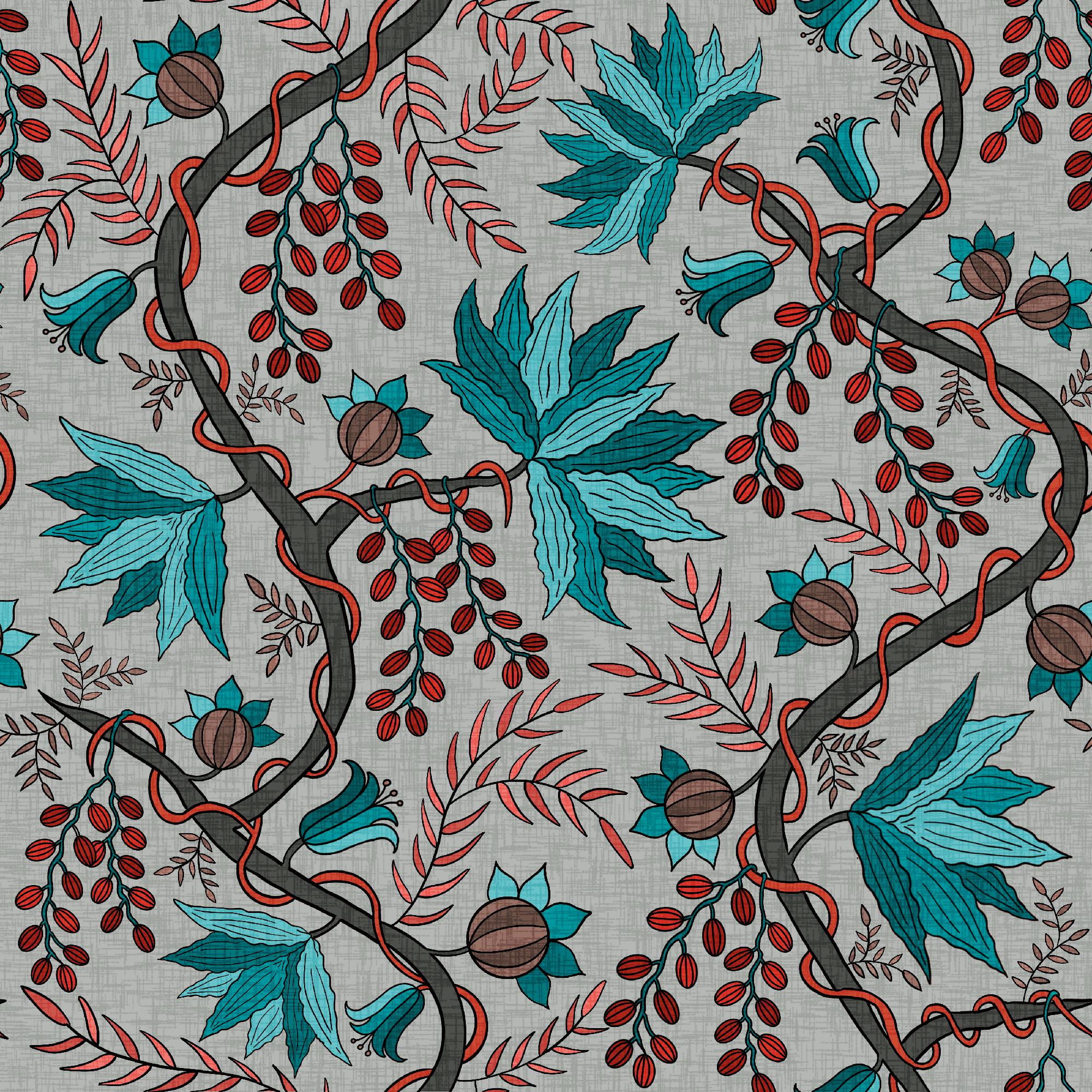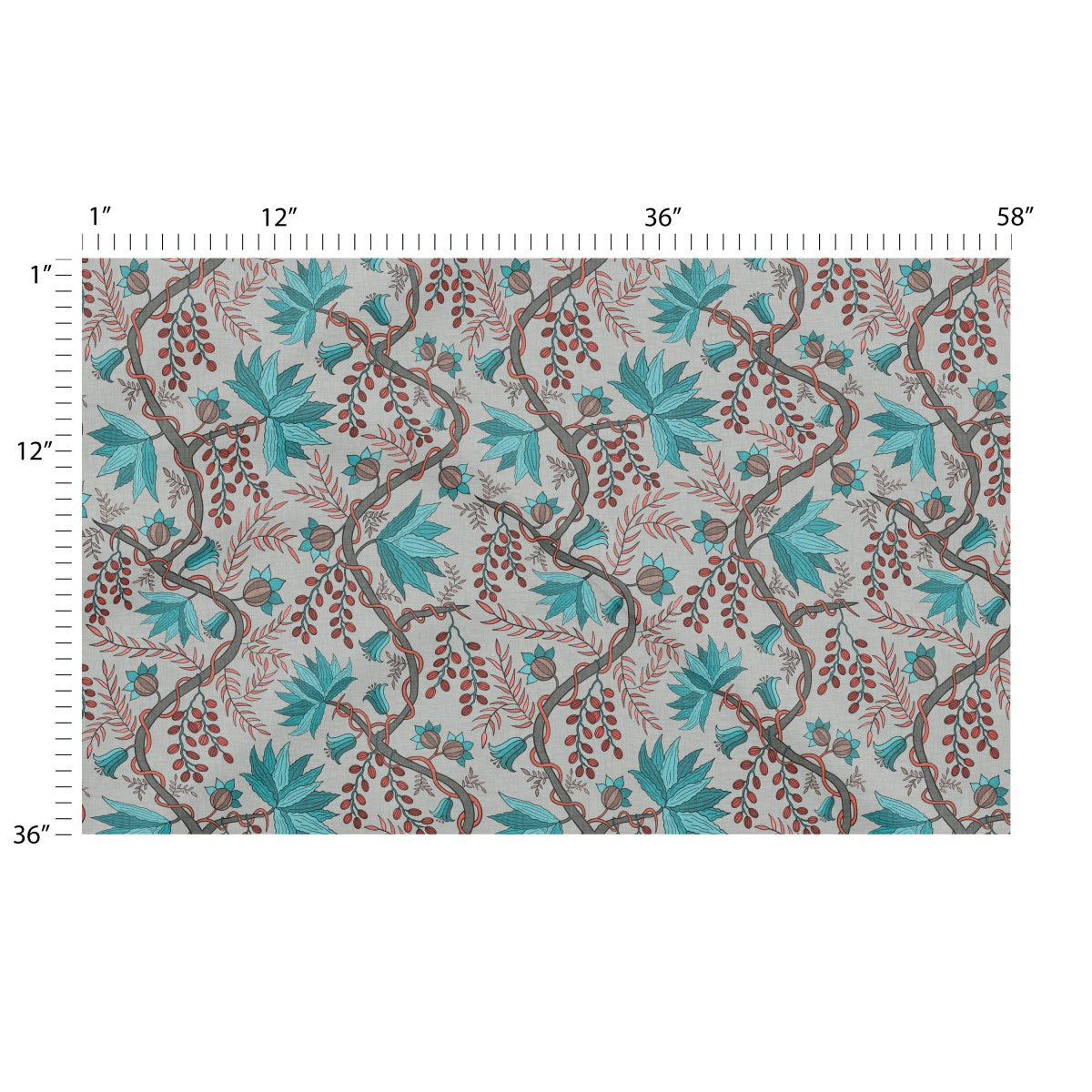 Vines and Fruits Teal - Natural Fiber Fabric By The Yard