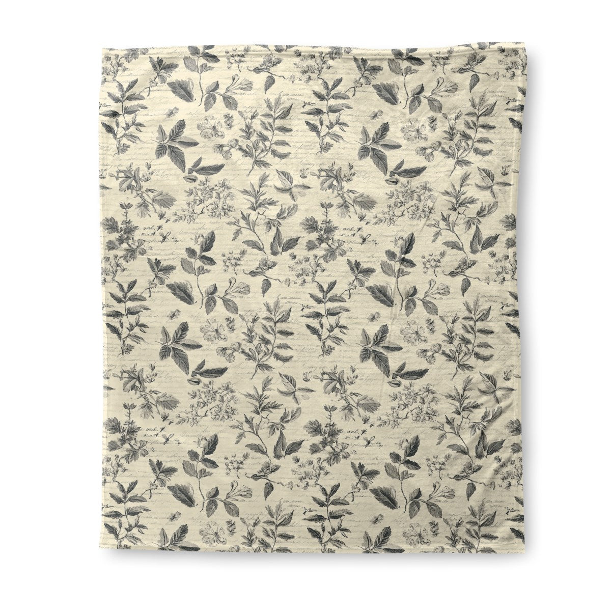 Vintage Botanical Script Toile 1 - Super Plush Blanket 50x60