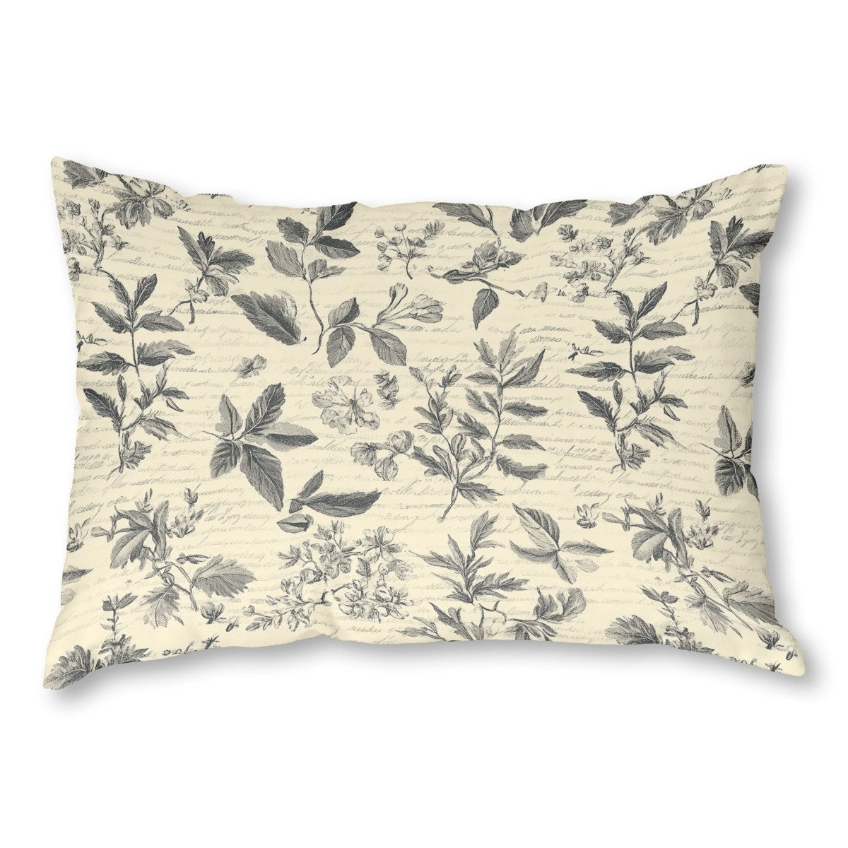 Vintage Botanical Script Toile 1 - Throw Pillow 14x20