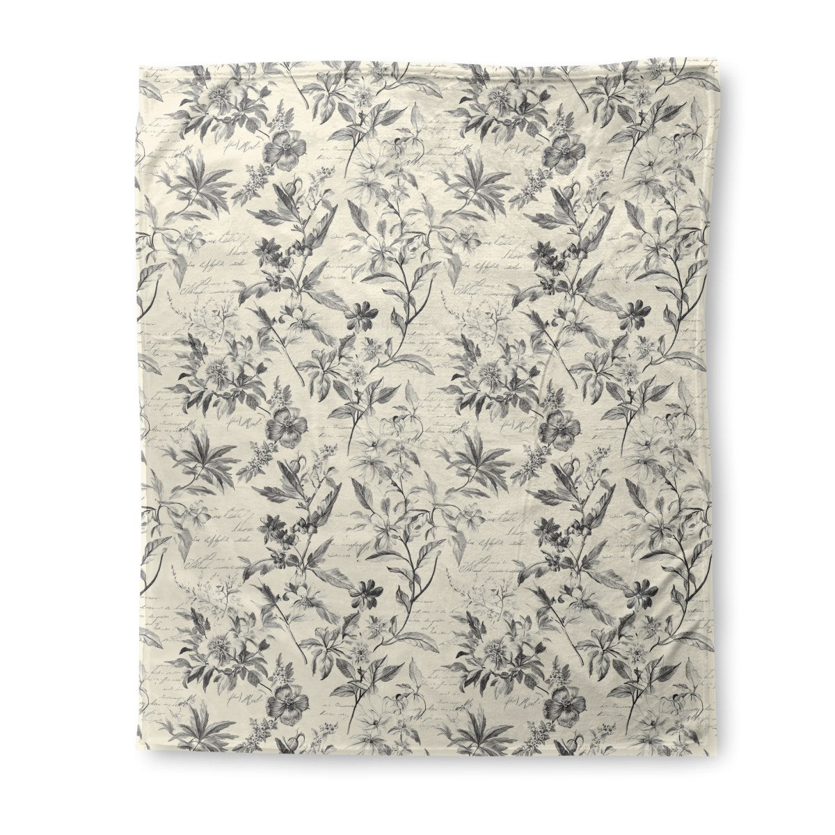 Vintage Botanical Script Toile 15 - Fleece Blanket 50x60