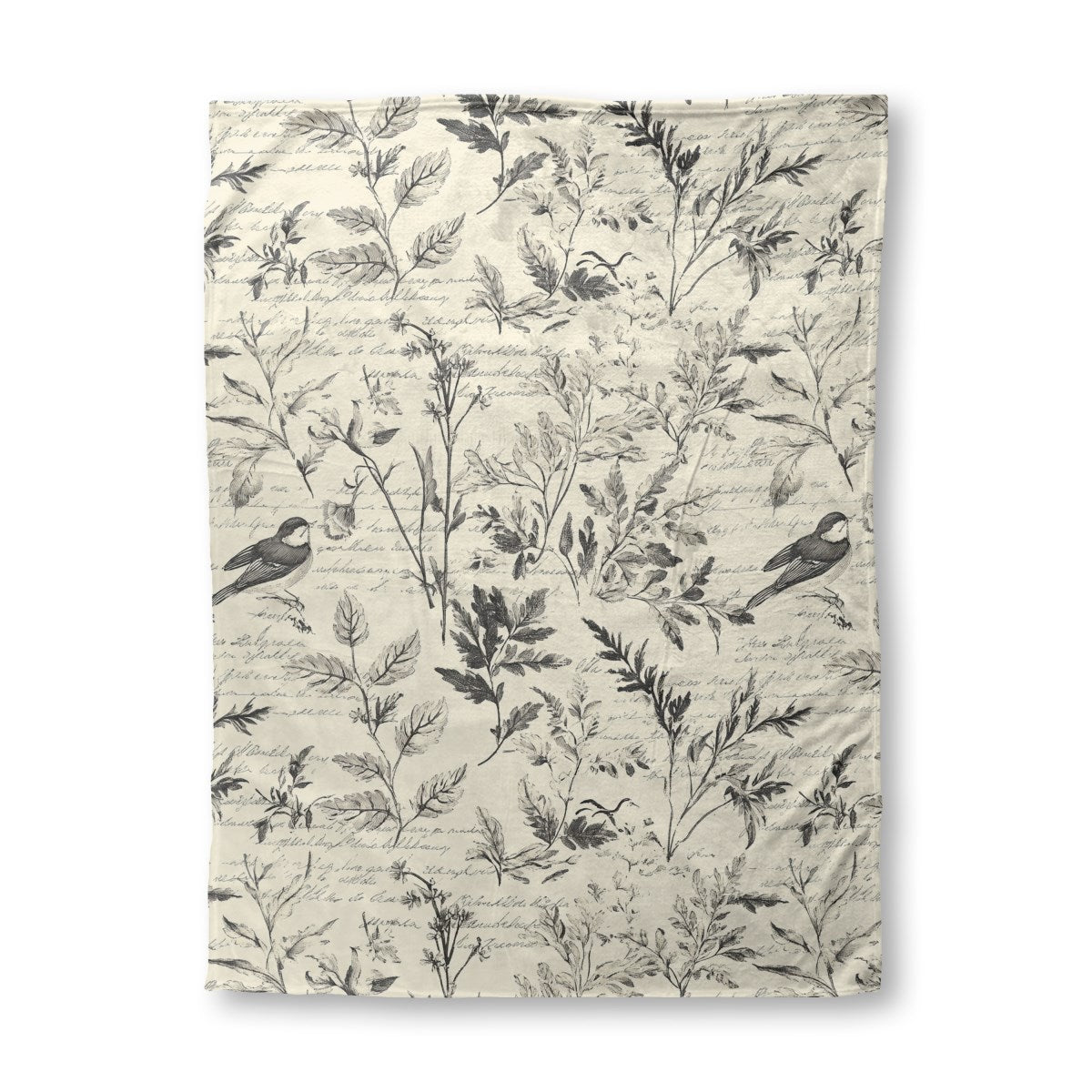 Vintage Botanical Script Toile 4 - Fleece Blanket 30x40