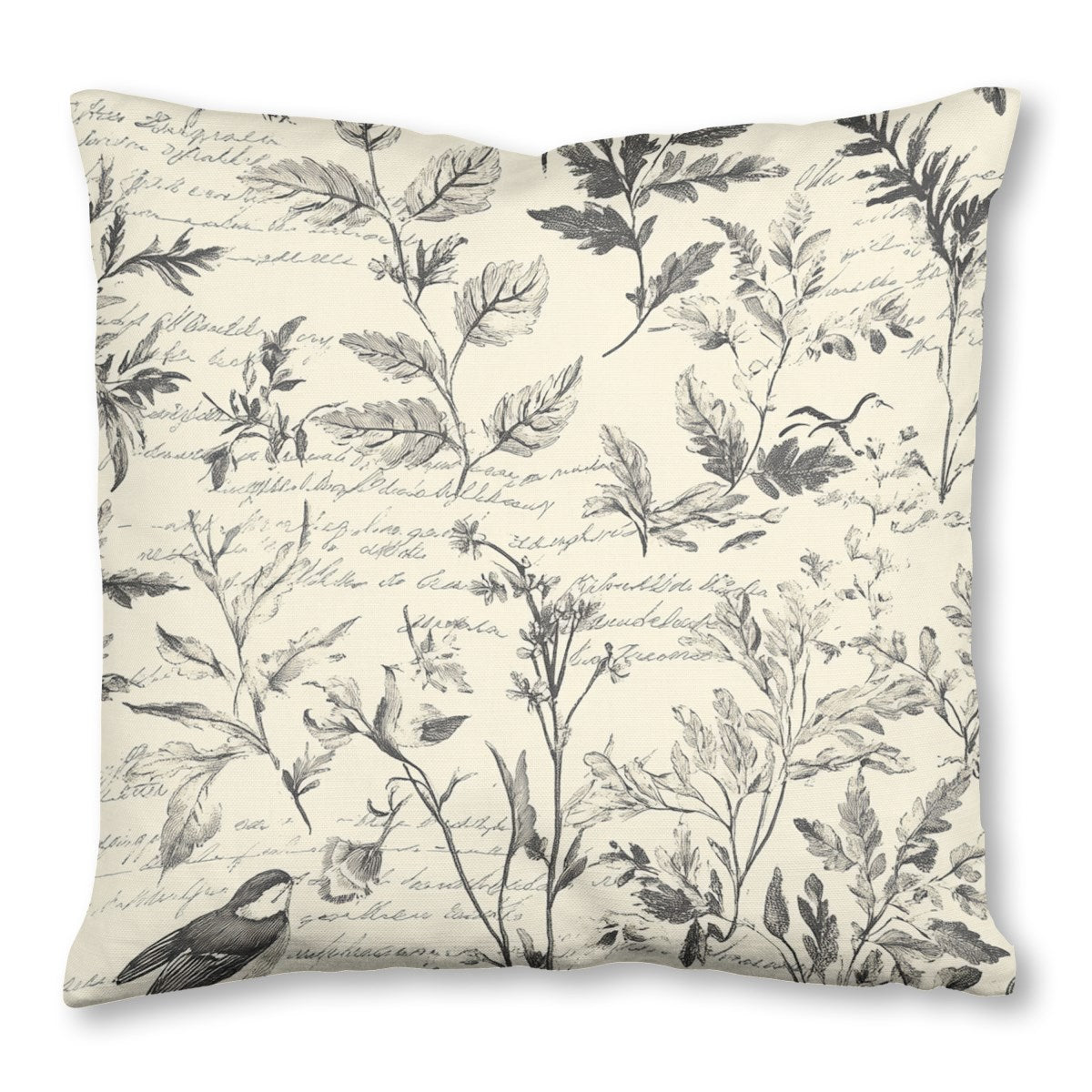 Vintage Botanical Script Toile 4 - Throw Pillow 18x18