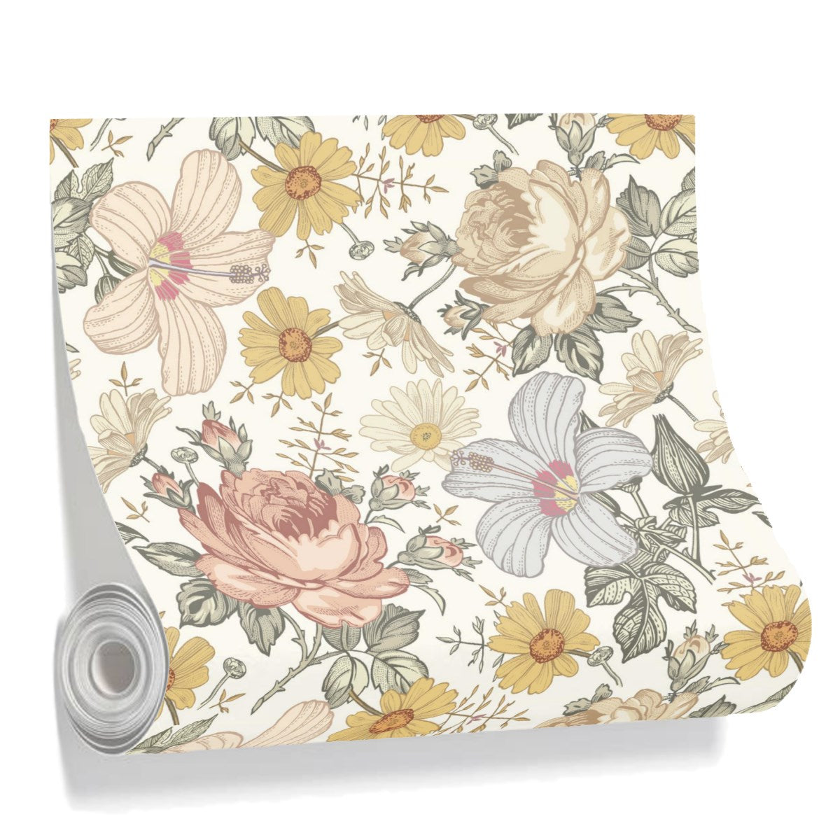 Vintage Earthy Floral - Wall Covering - Peel and Stick Wallmark Canvas